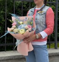Un buchet echilibrat și luminos, creat special pentru a transmite recunoștință și apreciere celor care ne-au ghidat cu răbdare și devotament. Tonurile de bleu și roz pastelat adaugă rafinament, transformând acest buchet într-un cadou memorabil pentru un dascăl deosebit.